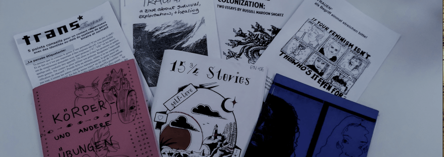 This workshop is about collective empowerment and artistic interventions for (multi-)marginalised* people. After an introduction and guidance by two artists, participants will be guided in the individual and/or collective processing of materials, texts, illustrations, etc. into a zine. A zine is an inexpensively produced booklet that is oriented towards anti-commercial principles of accessible knowledge transfer and self-/community empowerment. Without pressure or expectations, we want to be self-empoweringly creative together.