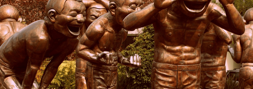 Bild: Die Skulpturengruppe A-maze-ing Laughter (2009) von Yue Minjun, aufgestellt im Morton Park in Vancouver, Canada. Fotografiert von Juda, zur Verfügung gestellt durch Pixabay.