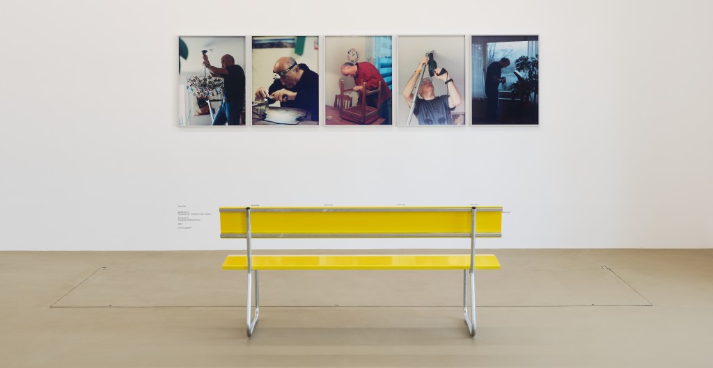 Bild: Werkserie «Quasitutto» und «Bank V (Kodak» von Gina Folly, 2023. «Gina Folly. Autofokus», Ausstellungsansicht im Kunstmuseum Basel | Gegenwart, 2023. Photo: Max Ehrengruber (Ausschnitt). ©Gina Folly